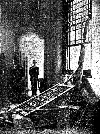 “… The one who used the explosive did not understand that perfect, for if it was intended to wreck the entire church the explosion would have been placed on the ground floor, where the resisting power was greater than that of the flooring of the choir loft. The explosive found a vacuum there, and its force was lost in that vacuum to a great degree. Some of the explosive’s force attacked the slight resisting power of the flooring and tore a hole into it.”
